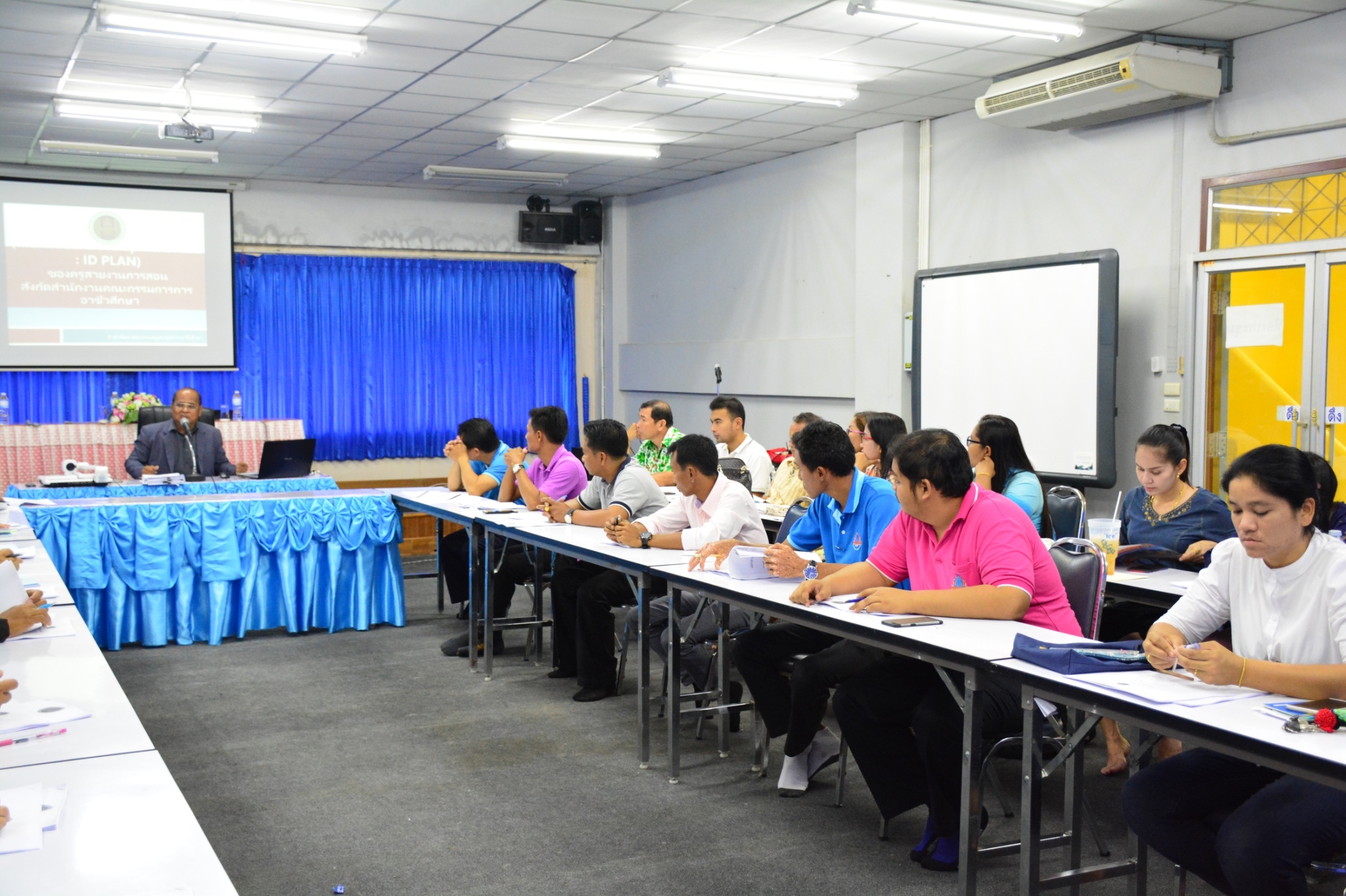ประชุมครูเพื่อทำความเข้าใจเกี่ยวกับแนวทางการขับเคลื่อนกระบวนการชุมชนการเรียนรู้ทางวิชาชีพ (PLC) และการประเมินตนเองและการจัดทำแผนพัฒนาตนเองรายบุคคล (ID PLAN)